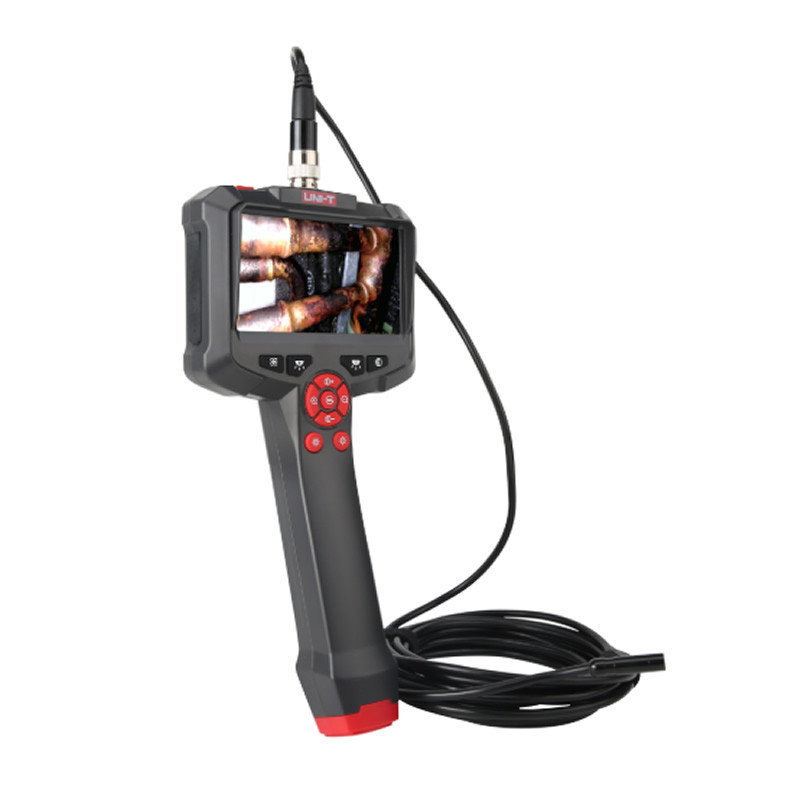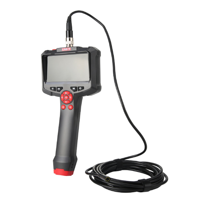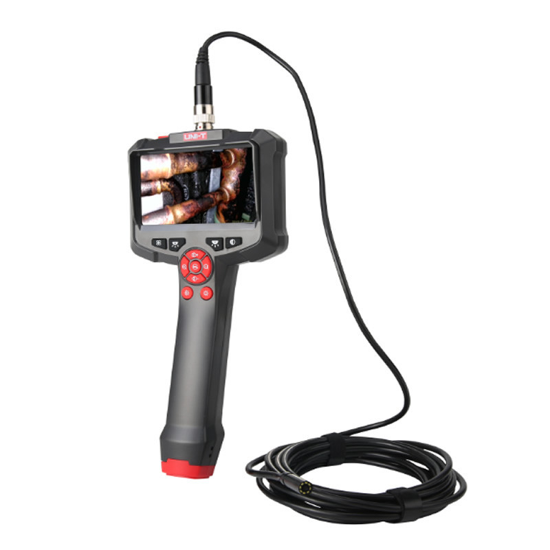 Boroscopio UNI-T UT665P con pantalla HD 4.3″, sonda IP67 de 8 mm y 8 LEDs de 5 metros de longitud. Ideal para inspección de motores, tuberías y zonas de difícil acceso.